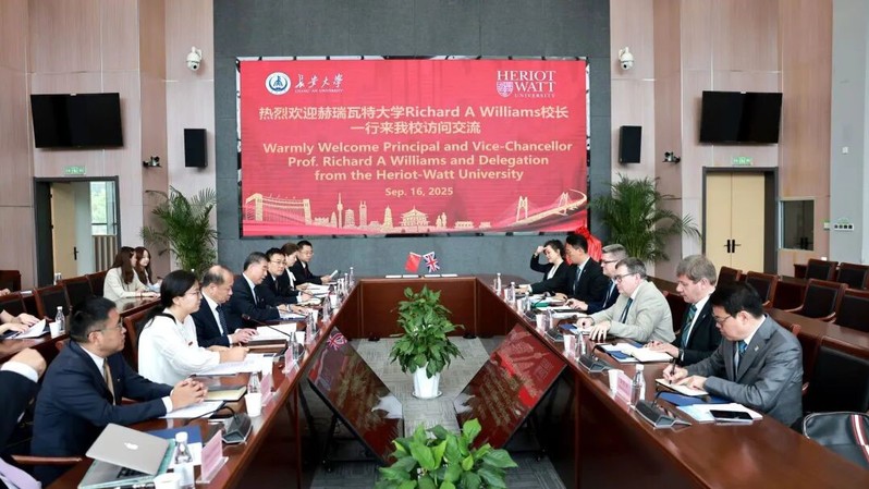 President Li Shutao extended a warm welcome to the delegation from Heriot-Watt University on behalf of the university. He spoke highly of the long-standing achievements in international collaboration between the two institutions and expressed his expectation to expand further the depth and breadth of talent cultivation and disciplinary development. Vice President Fan Wen chaired the meeting and shared insights on strengthening Sino-British educational cooperation.