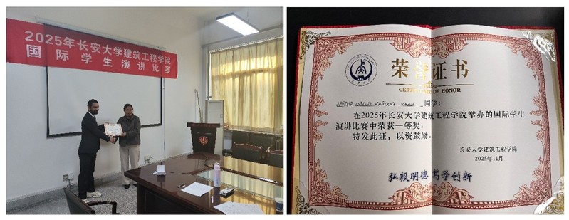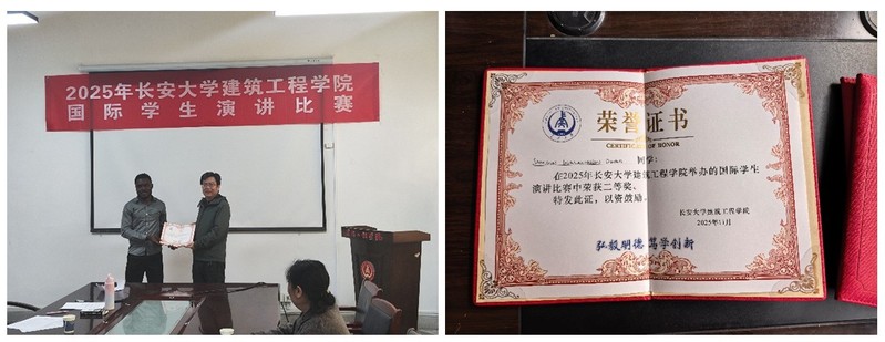 To promote international students' better learning and use of Chinese and understand their living and learning status, on the morning of November 2nd, 2025, the School of Civil Engineering held the 2025 Speech Contest for International Students in Room 705, the First Teaching Building of the Xiaozhai Campus. A total of 4 international students participated in this competition, and five teachers, including Ye Yanxia, Kong Dequan, Liao Fangfang, Fu Bo, and Miao Pengyong, who were international student tutors, served as judges.